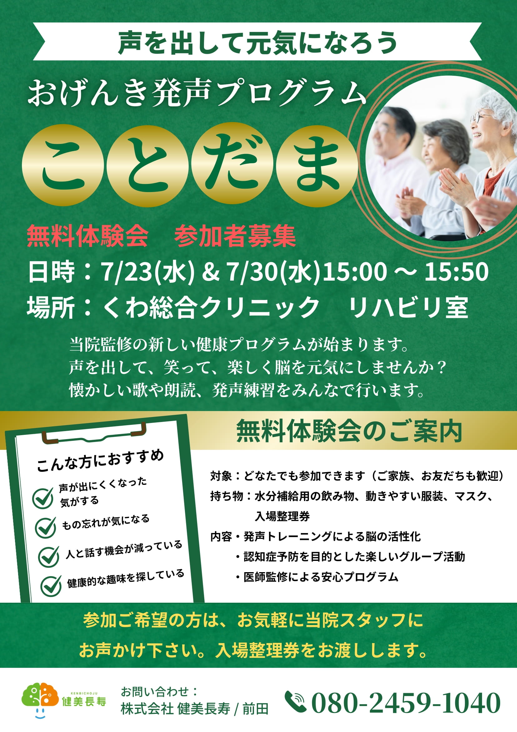 無料体験会のお知らせ;おげんき発声プログラム【ことだま】